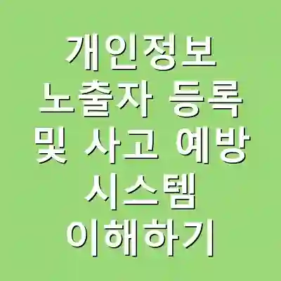 개인정보 노출자 등록은 개인의 소중한 정보를 보호하기 위한 필수적인 절차입니다. 이 과정을 통해 재정적 손실을 최소화하고, 안전한 금융 거래를 유지할 수 있습니다. 개인정보 보호를 위한 정확한 절차와 주의사항을 숙지하여, 필요한 경우 즉각적으로 등록하는 것이 중요합니다.