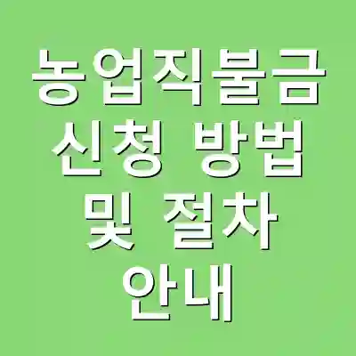 농업직불금은 농업인의 소득 안정을 위한 정부의 지원 제도로, 신청 기간은 3월 1일부터 5월 31일까지입니다. 신청 시에는 자격 조건을 충족해야 하며, 지급 금액은 소농직불금 130만 원, 면적직불금은 ha당 205만 원에서 215만 원입니다. 신청 방법 및 절차를 잘 이해하고 준비하여 안정적인 지원을 받을 수 있도록 하십시오.