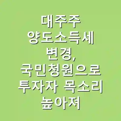 최근 정부의 대주주 양도소득세 기준 변경 발표는 많은 투자자들에게 충격을 안겼습니다. 2025년부터 종목당 과세 기준이 50억 원에서 10억 원으로 하향 조정됨에 따라, 많은 개인 투자자들이 대주주로 분류될 가능성이 커졌습니다. 이는 단순한 세금 조정이 아닌, 투자 전략에 큰 영향을 미치는 변화입니다. 이 글에서는 이러한 변화의 배경, 청원 참여 방법 및 그에 따른 투자자들의 대응 방안에 대해 자세히 알아보겠습니다.