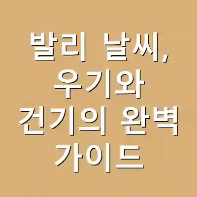 발리의 날씨는 여행의 즐거움에 큰 영향을 미칩니다. 우기와 건기의 차이를 이해하고 준비한다면, 더욱 만족스러운 여행을 즐길 수 있을 것입니다. 이 정보를 바탕으로 발리 여행을 계획한다면, 멋진 추억을 만들 수 있을 것입니다.