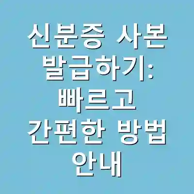 신분증 사본 발급이 필요할 때가 종종 있습니다. 특히 요즘처럼 모바일 기기가 발달한 시대에는 복잡한 절차 없이 간편하게 진행할 수 있는 방법이 있습니다. 본 글에서는 스마트폰을 통한 신분증 사본 발급 방법과 유용한 앱을 소개하여, 필요한 순간에 신속하게 대응할 수 있도록 안내드립니다. 이 글을 통해 신분증 사본 발급의 간편함과 유용한 정보들을 얻어가실 수 있습니다.