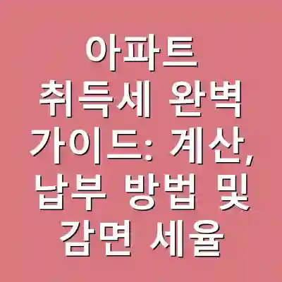아파트 취득세 완벽 가이드: 계산, 납부 방법 및 감면 세율