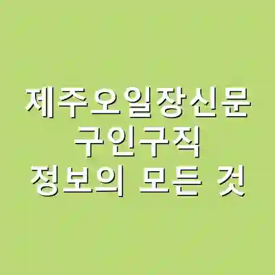 제주오일장신문 구인구직 정보의 모든 것