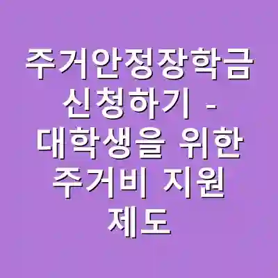주거안정장학금은 대학생에게 주거비를 지원하는 제도입니다. 신청 자격 및 조건을 확인하고 필요한 서류를 준비하는 것이 중요합니다. 이 제도를 통해 학생들은 경제적 부담을 덜고 학업에 전념할 수 있습니다.