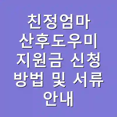 친정엄마 산후도우미 지원금은 가족의 돌봄을 인정하는 지자체 지원 사업입니다. 신청 방법과 필요한 서류를 정확히 파악하여 준비하는 것이 중요합니다. 이 글을 통해 산후도우미 지원금을 효과적으로 신청하는 방법에 대해 이해하셨기를 바랍니다.