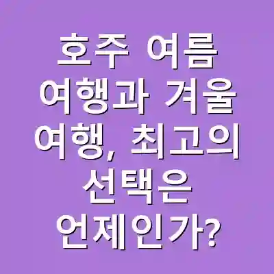 A: 호주 여름 여행은 해변과 다양한 여름 축제로 인기가 있으며, 겨울 여행은 스키 및 문화 체험으로 독특한 매력을 가지고 있습니다. 개인의 활동 선호에 따라 각기 다른 매력이 있습니다.