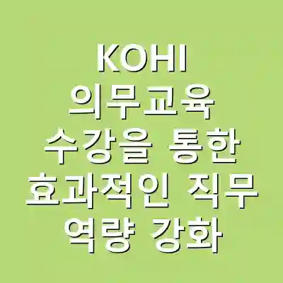 KOHI 의무교육은 직장인들에게 필수적인 교육 과정으로, 자격을 갖춘 인력으로 성장할 수 있는 기회를 제공합니다. 교육을 통해 전문성을 높이고, 향후 경력에도 긍정적인 영향을 미칠 수 있습니다. 이 교육을 통해 여러분의 직무 역량을 한층 더 강화해 보시기 바랍니다.